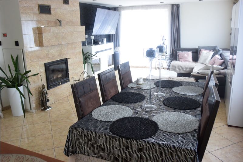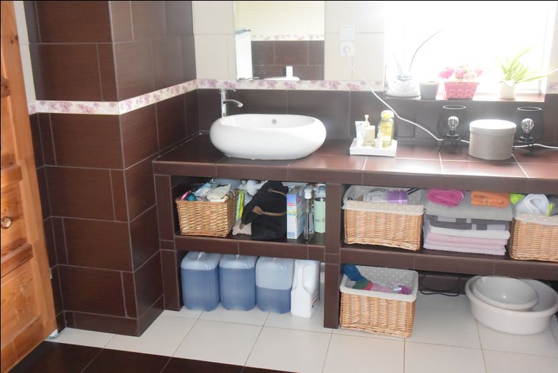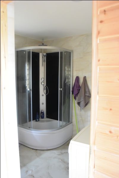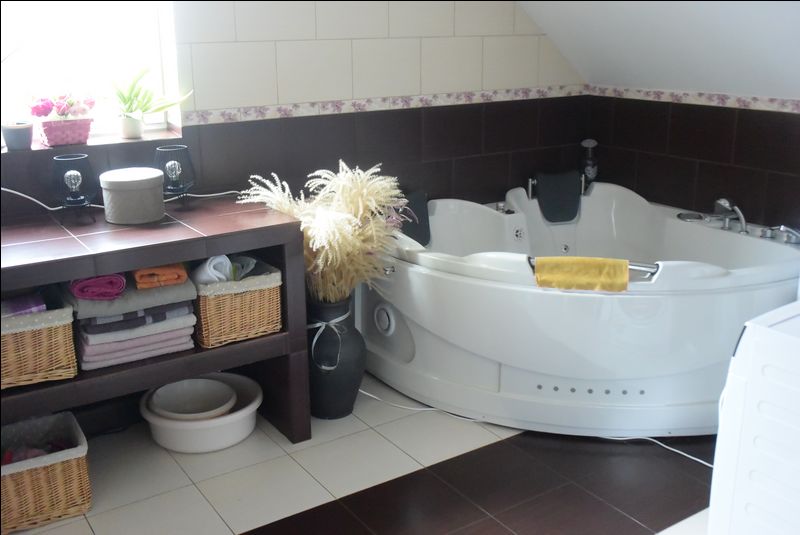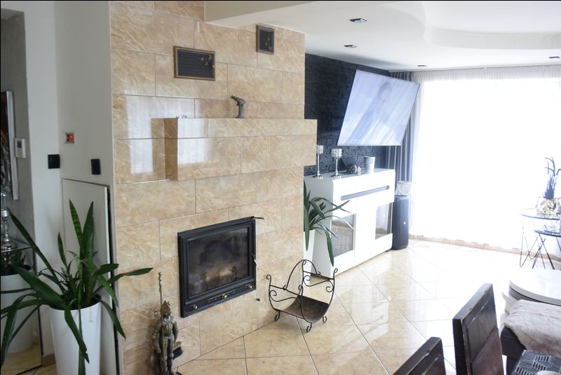 łazienka 9 m2.W salonie kominek z płaszczem wodnym.Na parterze ogrzewanie podłogowe.W łazience na piętrze -- hydromasaż.