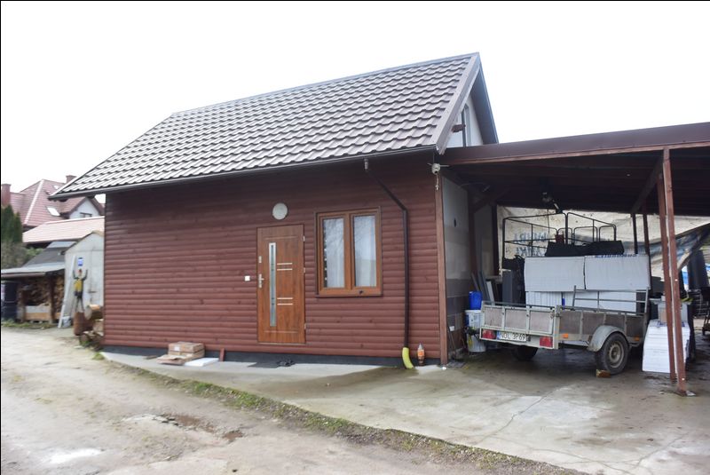 Na terenie posesji drewniany domek mieszkalny