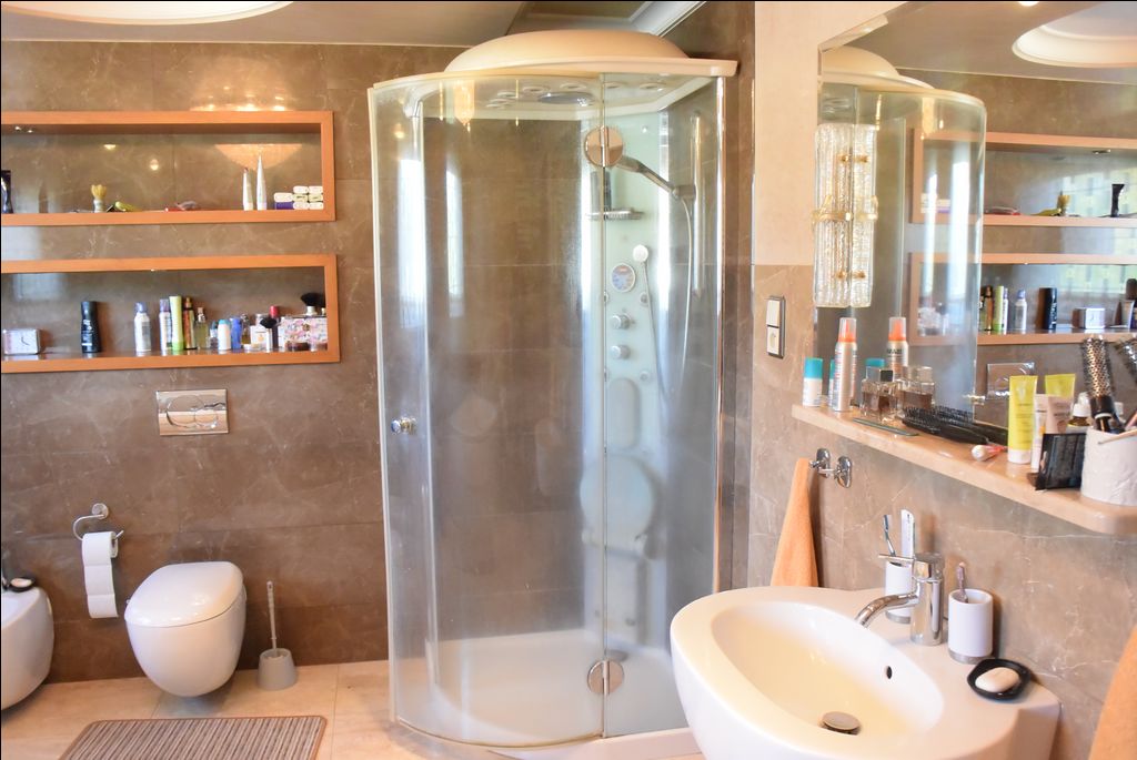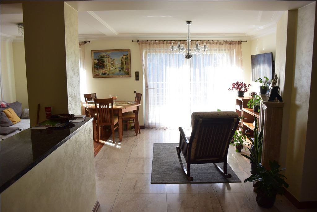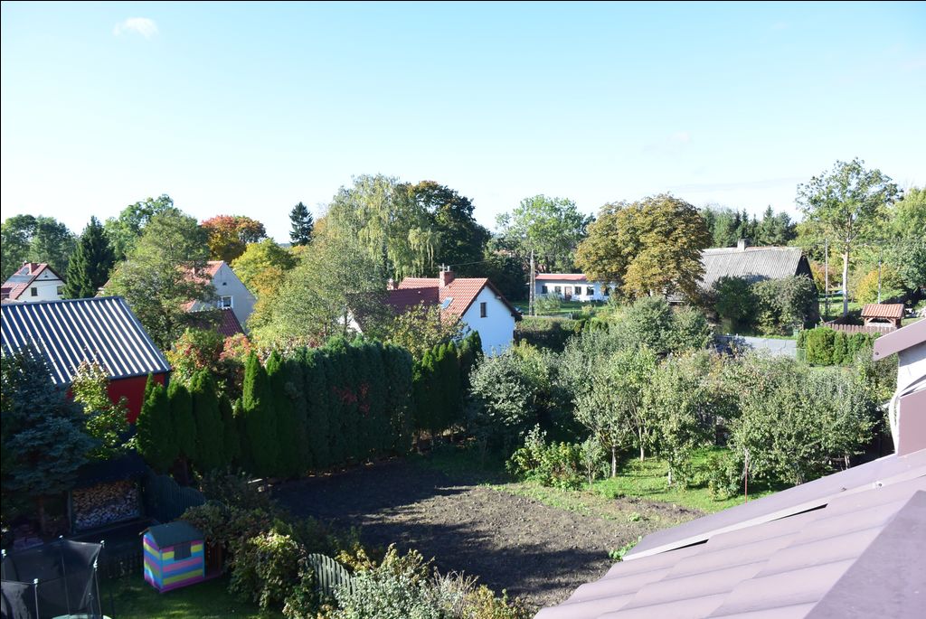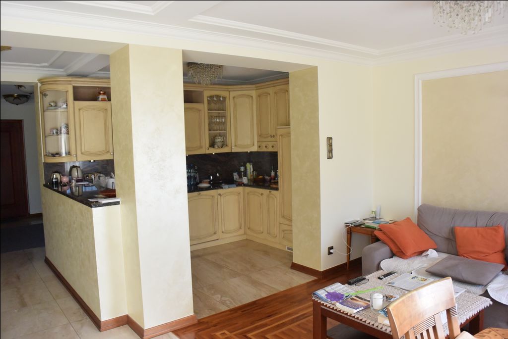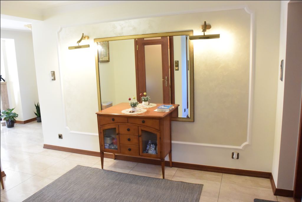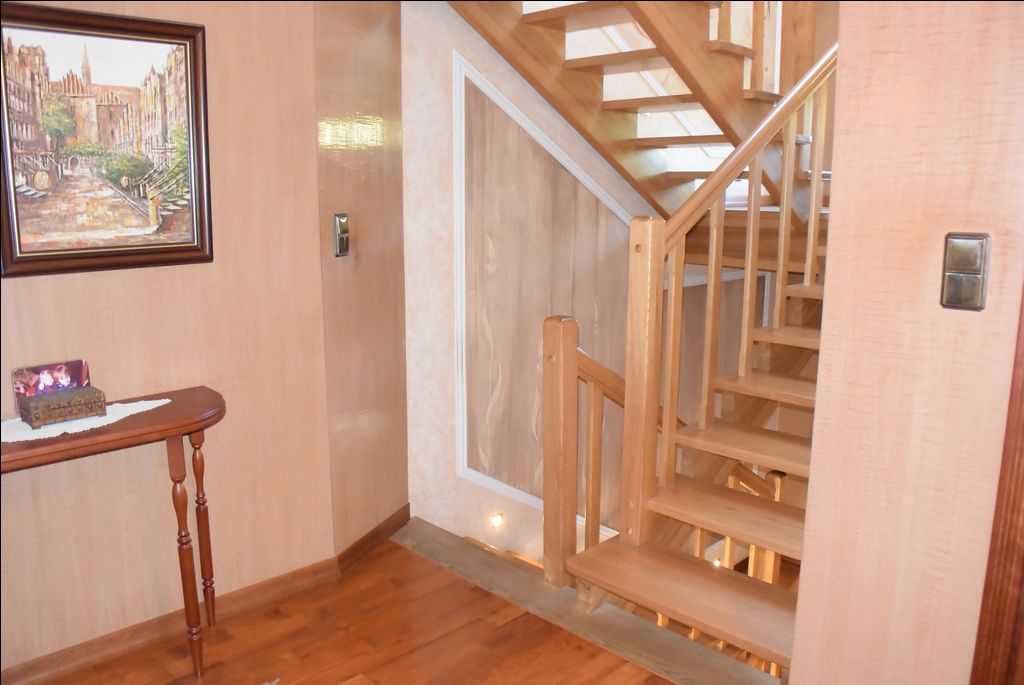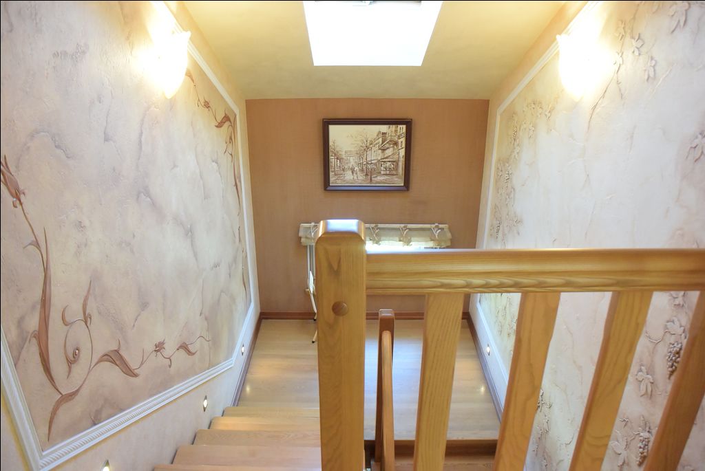 Poziom minus1: biuro z zapleczem,łazienka,wyjście do ogrodu.Piętro -- Duża sypialnia,garderoba,pokój łazienkowy (natrysk z sauną).Drugie piętro -- duża sypialnia z garderobą,łazienka,taras.Schody -- lite drewno.Dużo naturalnych materiałów.Stiuki,trawertyny.W dużej części domu ogrzewanie podłogowe.Parking na 4 samochody + dodatkowe przed osiedlem.