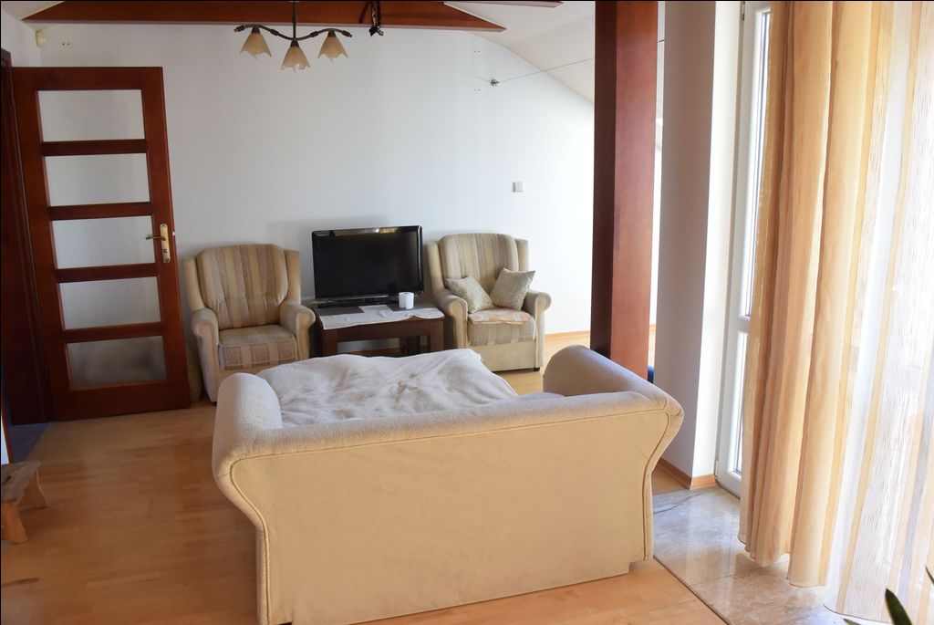 Parter -- salon z kominkiem ( "Panorama" Jotula)z kuchnią,łazienka , duży holl.Duży taras 22 m2.